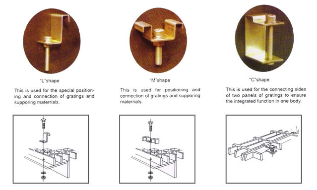 Fixing Clamps are required during installation of gratings. Three types of clams are available based on location and type of joining required.